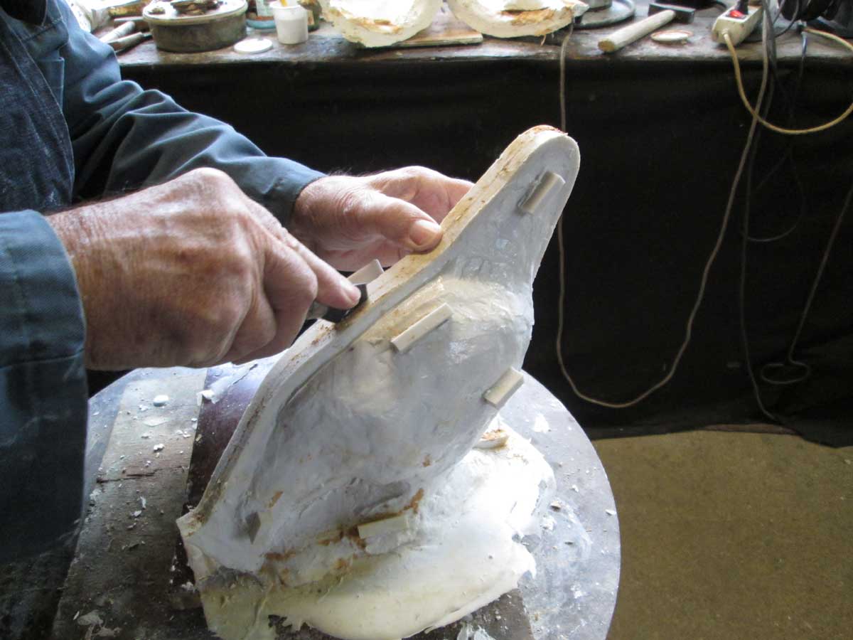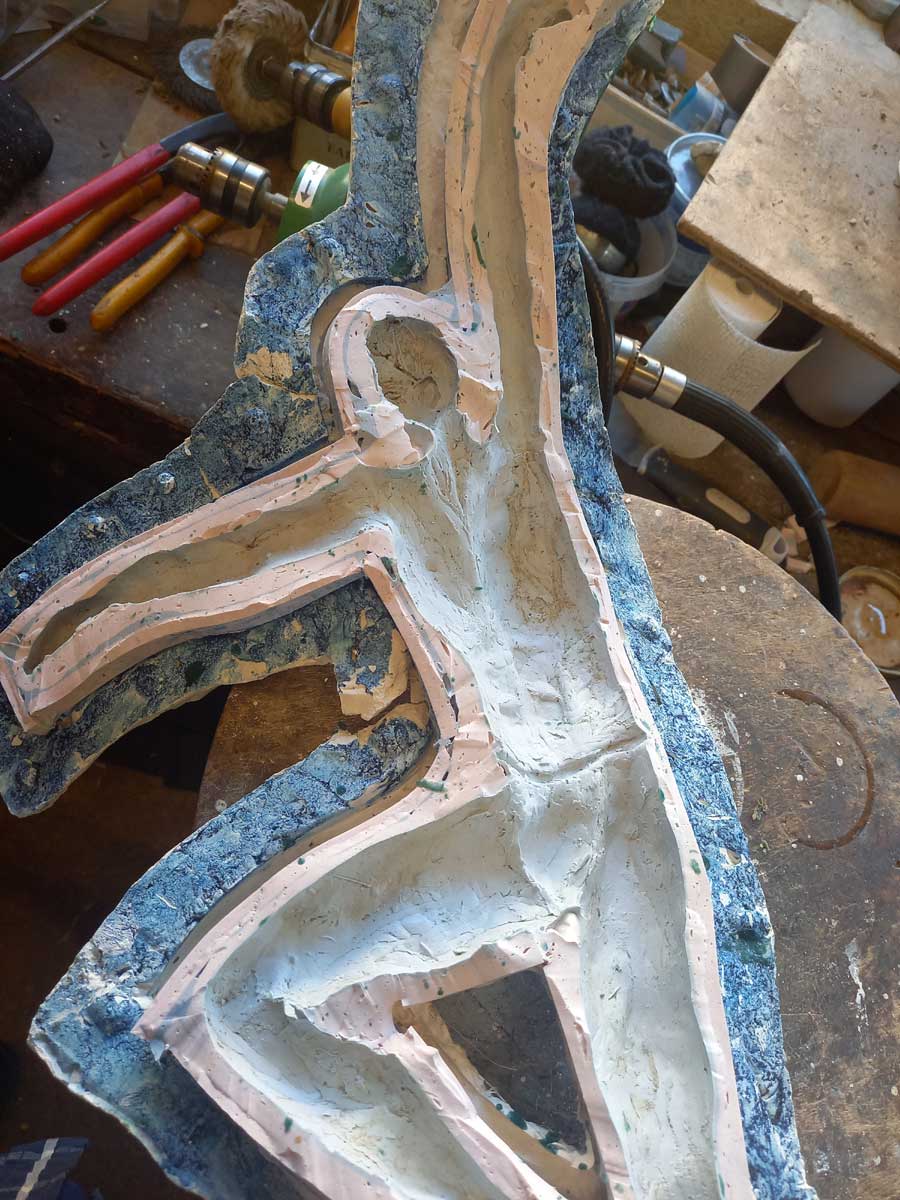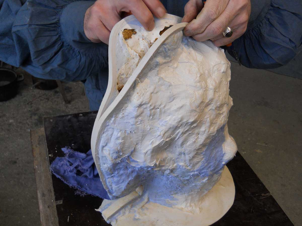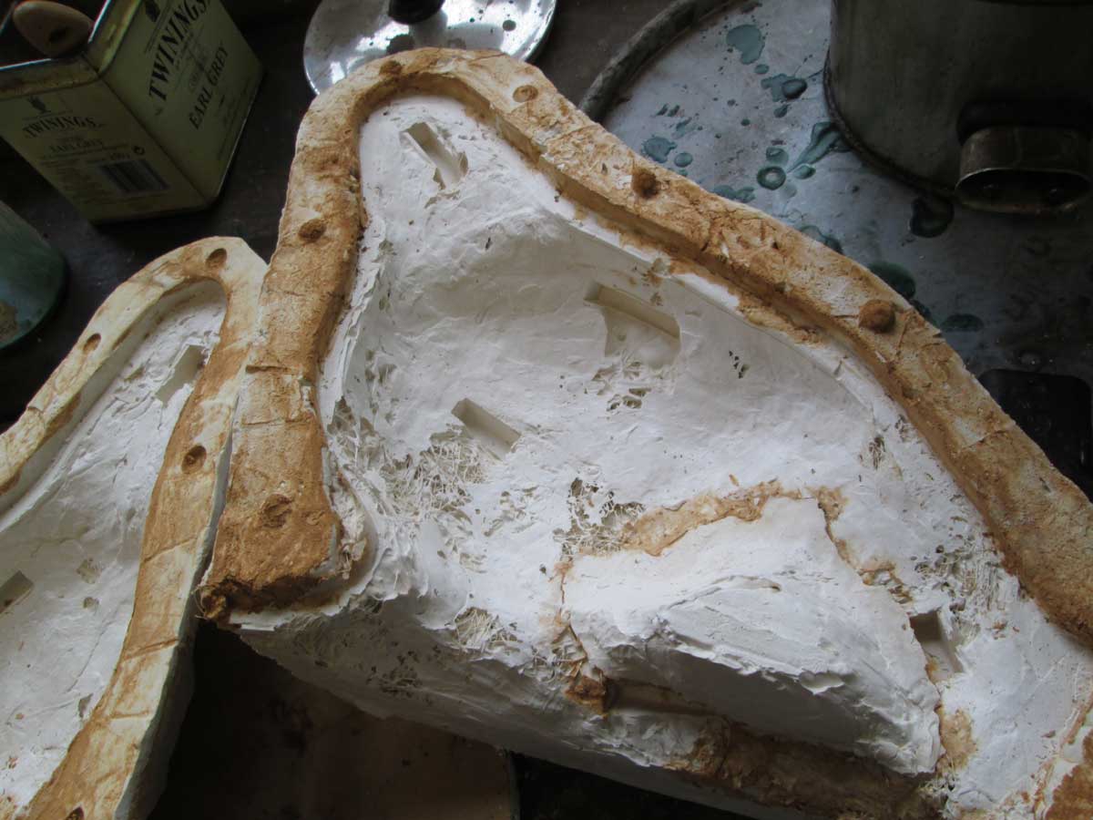 Autour de ces cires, nous avons ensuite réalisé des moules en plâtre de moulage, silice et fibre de verre injecté.