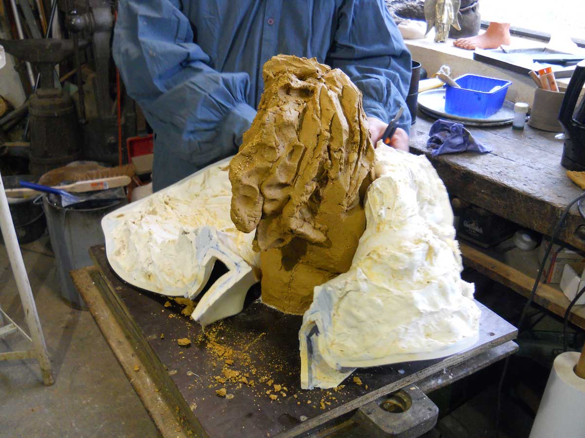 L’Atelier travail très souvent sur commande, quelques sculpteurs, professionnels, et aussi amateurs font appelle à mes services. Une première rencontre permet d’élaborer le projet et de déterminer les différentes phases, pour le moulage, choisir les plans joints étudier l’ouverture selon les dépouilles. Tirages des cires et rectifications si besoin. Pour les tirages terres une rectification avant le séchage est très souvent nécessaire, puis les cuissons et patine se font en présence du client. Pour ce mois-ci sept bronzes ont été réalisés.