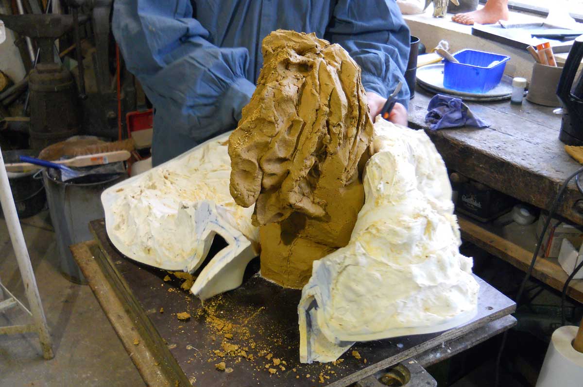 L’Atelier travail très souvent sur commande, quelques sculpteurs , professionnels , et aussi amateurs font appelle à mes services. Une première rencontre permet d’élaborer le projet et de déterminer les différentes phases, pour le moulage, choisir les plans joints étudier l’ouverture selon les dépouilles. Tirages des cires et rectifications si besoin. Pour les tirages terres une rectification avant le séchage est très souvent nécessaire, puis les cuissons et patine se font en présence du client. Pour ce mois-ci sept bronzes ont été réalisés.