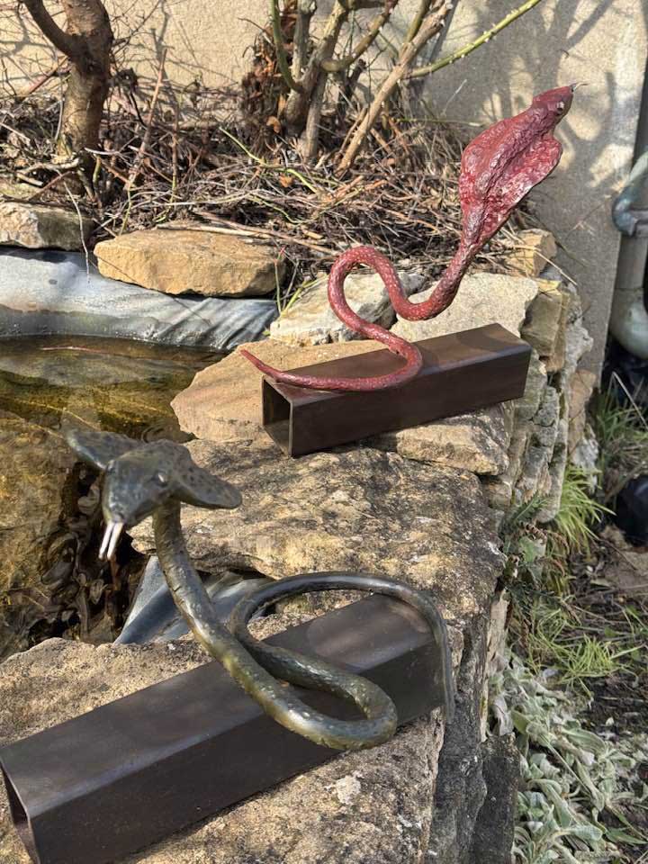 Le savoir-faire de Thierry, Maître bronzier, et mon souhait de voir mes créations coulées en bronze ont bien fonctionnés.